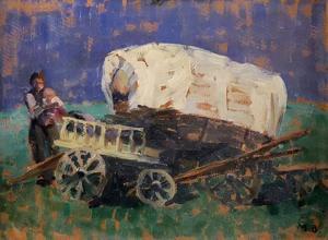 La caravane, huile sur carton, monogrammée M.B, 22x30 cm