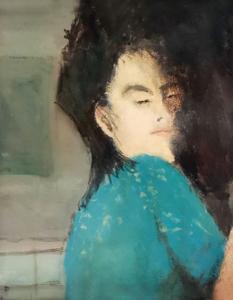 Brune accoudée, huile sur toile, signée, 87x65 cm