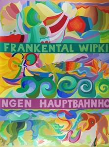 Broyer du rouge sur sa palette, lettres en papier, peinture disp...