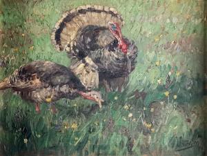 Le faucon, huile sur panneau, signée, 18x23 cm