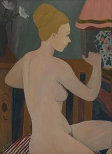 Nu assis, huile sur isorel, signée et datée 59, 63x47 cm