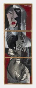 Portrait de femme sur fond rouge, tryptique, huile sur toile, si...