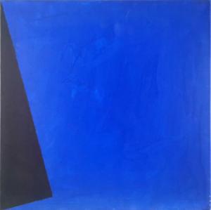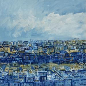 Ville bleue, acrylique sur toile, signée, 40x40 cm