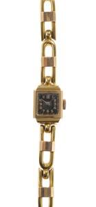 Cadran noir, aiguilles et chiffres romains dorés, or 585, poinço...