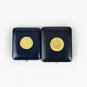 Métal doré et argenté, à décor guilloché, L 13 et 15 cm
