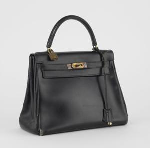 Cuir lisse noir, cadenas et clefs, garniture en métal doré, 21x2...