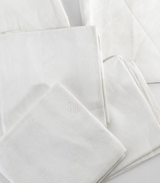 4113. Suite de cinq draps aux chiffres de la reine Marguerite