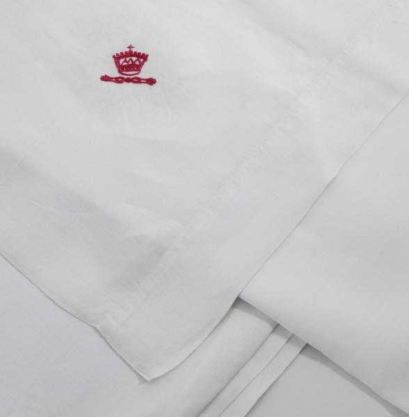 4111. Deux serviettes brodées aux chiffres de la reine Marguerite de S...