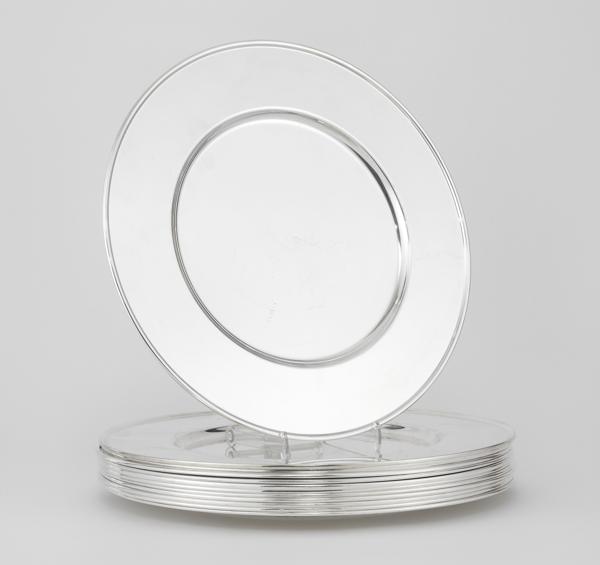 4154. Suite de 12 assiettes de présentation à bordure droite