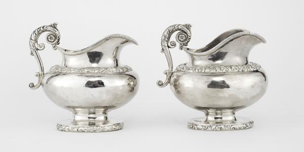 4180. Paire de crémiers à frise de fleurs et anses acanthes