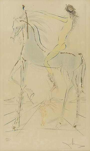 Le cheval du Pharaon, lithographie rehaussée de peinture or, sig...