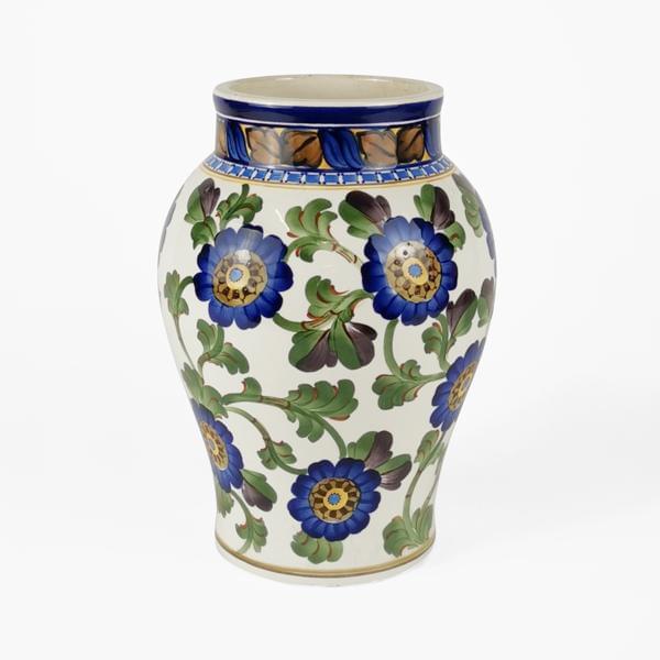 Faïence polychrome à motif de fleurs, H 31 cm