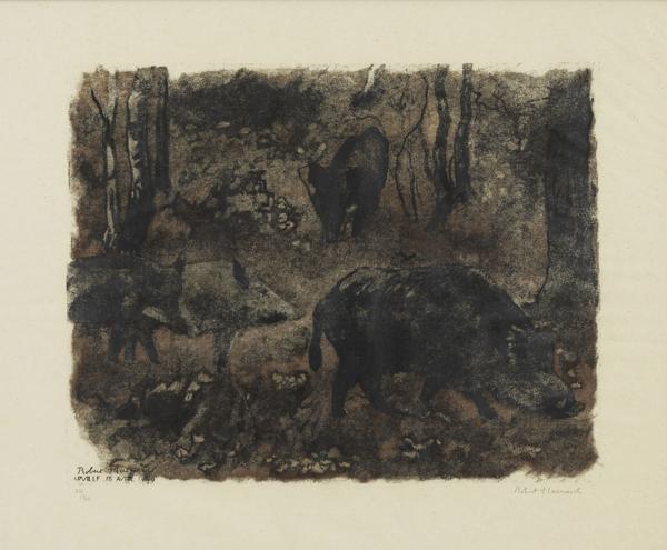Marcassins, 1er mars 1969, bois gravé, signé et numéroté 32/70,...