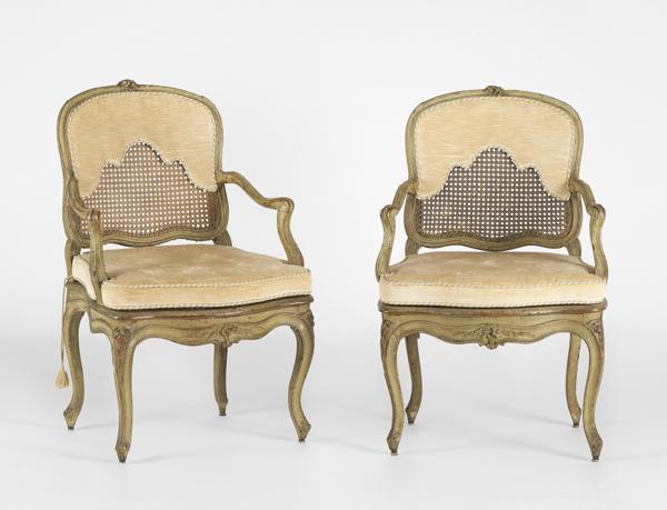 5105. Paire fauteuils cannés à la reine d'époque Louis XV