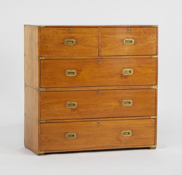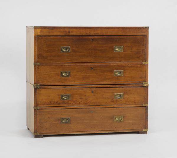 Un abattant et trois tiroirs, acajou et laiton, 102x110x52 cm. P...