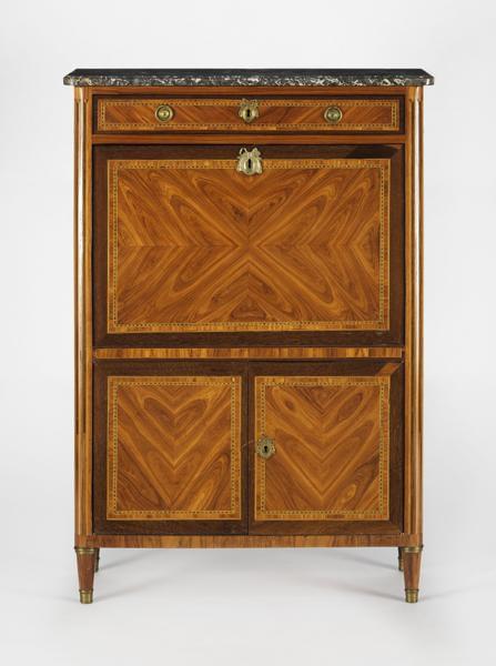 Un tiroir, un abattant et deux vantaux, bois de rose et bois de...