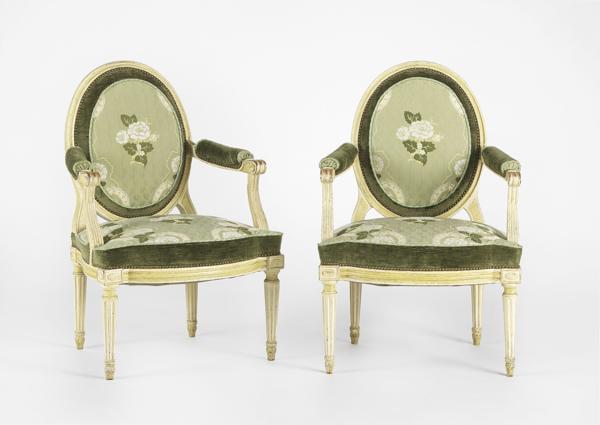 5120. Paire de fauteuils médaillon de style Louis XVI