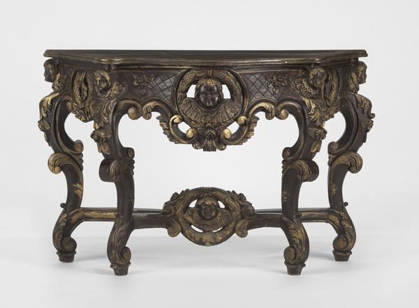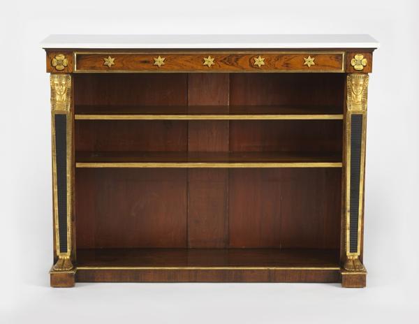 Palissandre, bois sculpté et doré à motifs de têtes d'Egyptiens,...