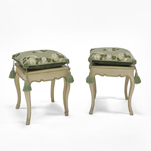 Bois laqué beige, placets verts à fleurs, 45x40x40 cm