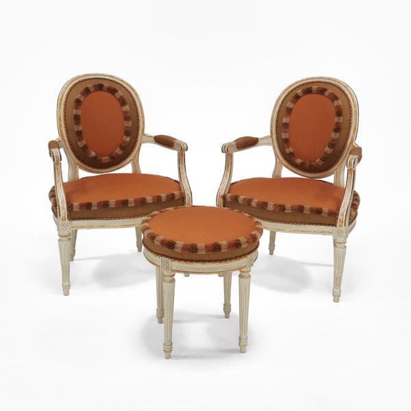 5119. Paire de fauteuils et un repose-pied de style Louis XVI