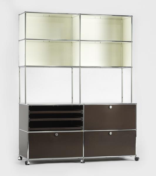 Métal, et métal laqué chocolat et blanc, 200x152x52 cm. Provenan...