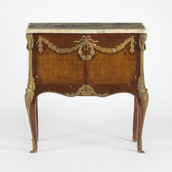 Bois de placage et marqueterie, régule doré, 109x77x33,5 cm