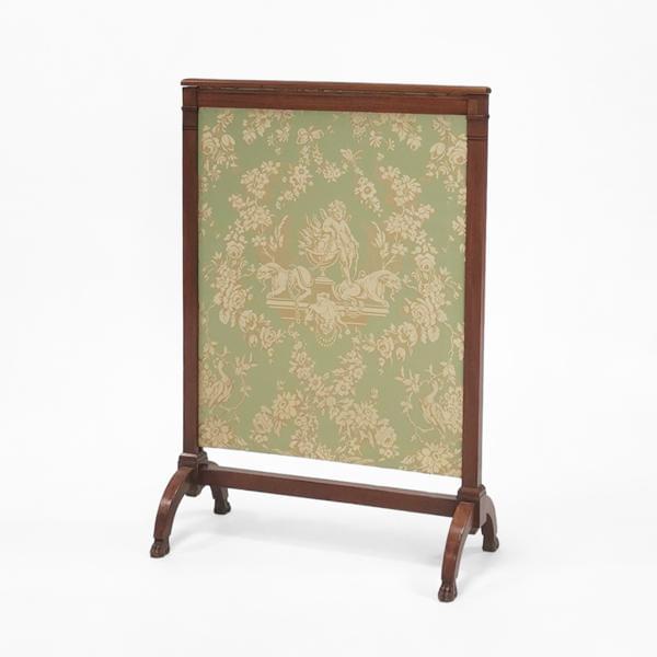 Bois laqué blanc, soie à motif de fleurs sur fond rose