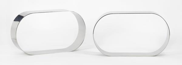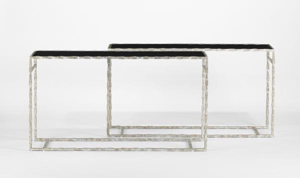 Métal laqué argenté et verre fumé noir, 82x151x40 cm