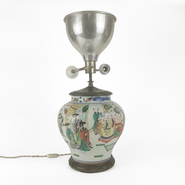 Porcelaine émaillée polychrome à décor de personnages, percé à l...