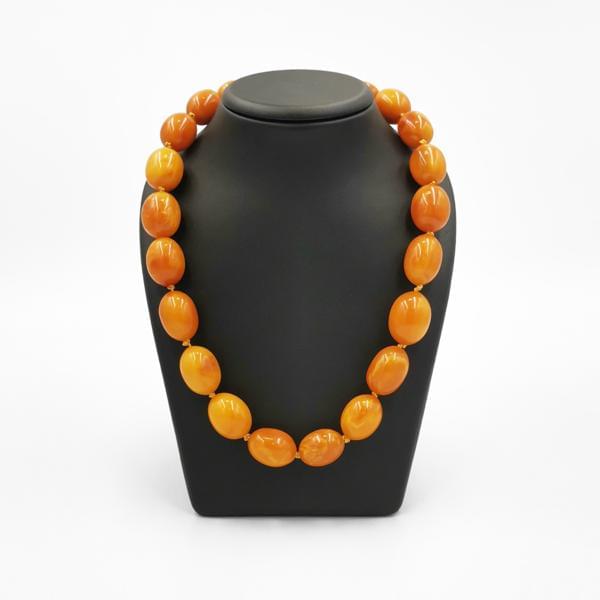 Composé de perles d'ivoire, os, métal et façon ambre, L 46 cm
