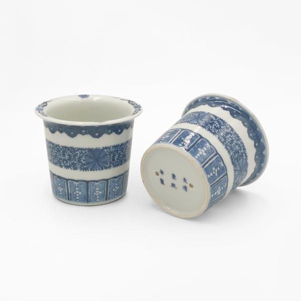 Porcelaine émaillée bleu poudré et bleu blanc, D de 5,5 à 6,5 cm