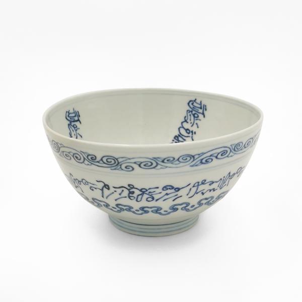 Porcelaine émaillée bleu blanc à motif de calligraphie arabe, D...