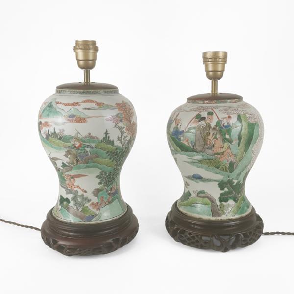 5267. Deux vases famille verte montés en lampe, Chine, XXe s