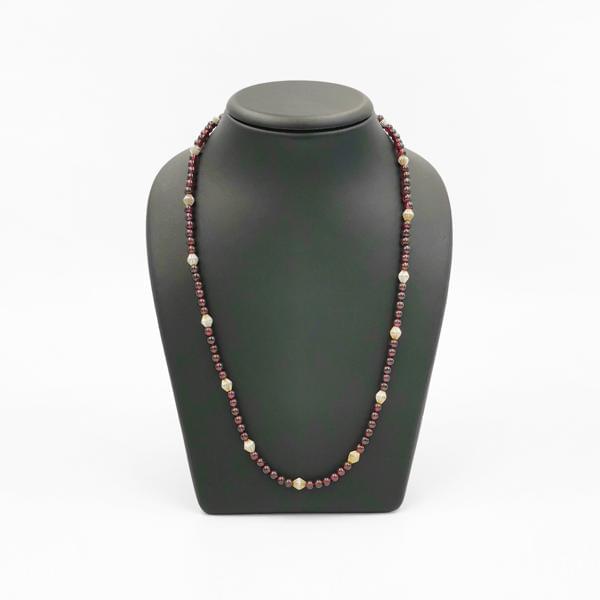 Ponctué de perles godronnées en métal, fermoir métal, L 73 cm