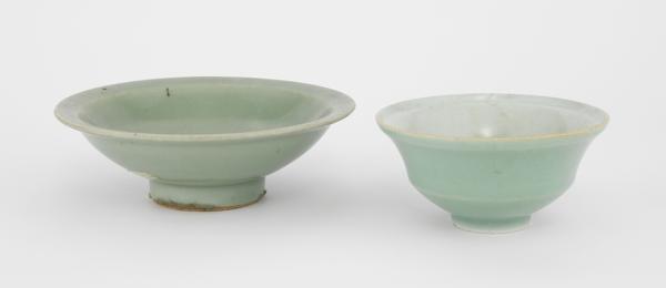 Porcelaine émaillée céladon, D 20,5 et 15 cm