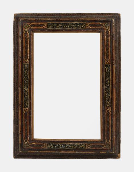 Dans un cadre en bois dur et son passe-partout en brocart. Orné...