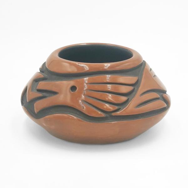 Argile peint et poli à décor zoomorphe en relief, D 18 cm