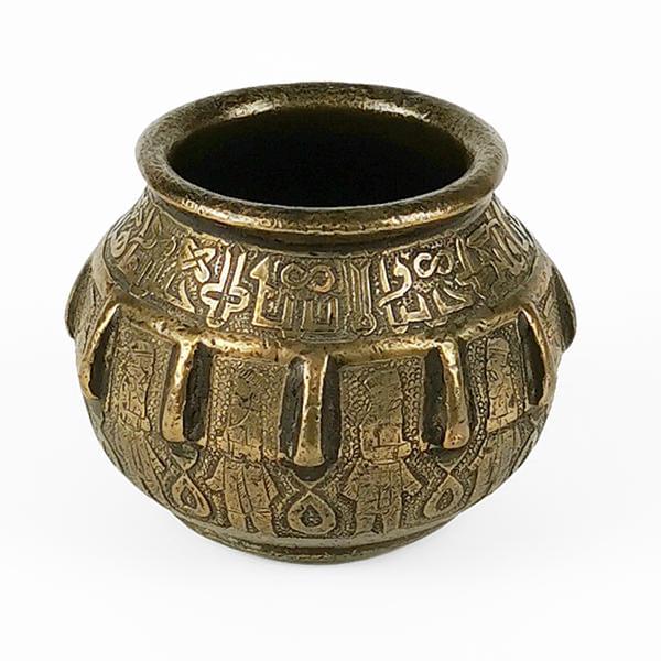 Alliage cuivreux à motif de calligraphie, D 10 cm
