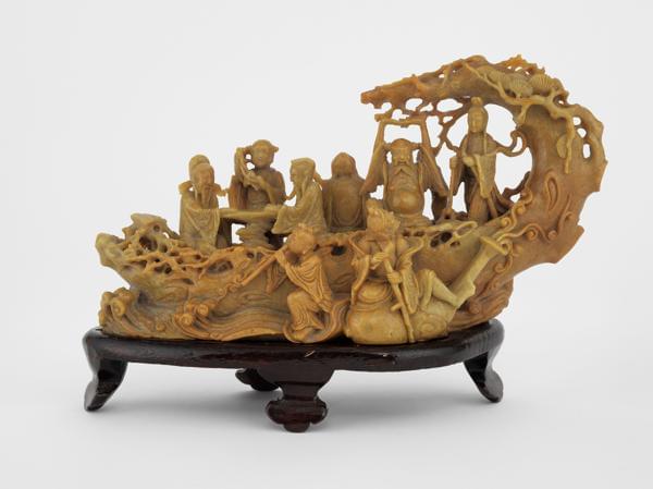 5303. Groupe sculpté à motif du grand bateau dragon et les huit immort...