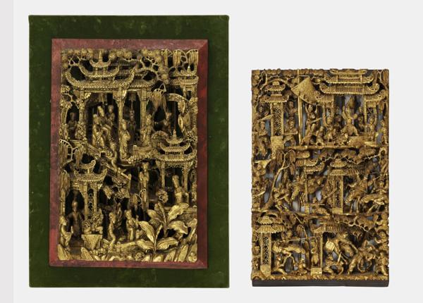 5307. Deux panneaux décoratifs de temple, Chine, XXe