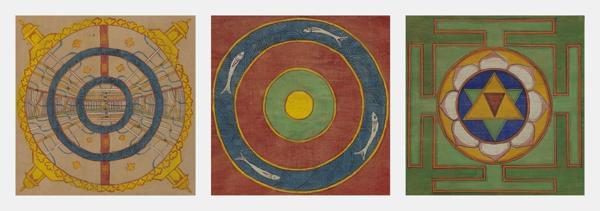 Suite de trois peintures, Rocky plain, pigments sur toile, signé...