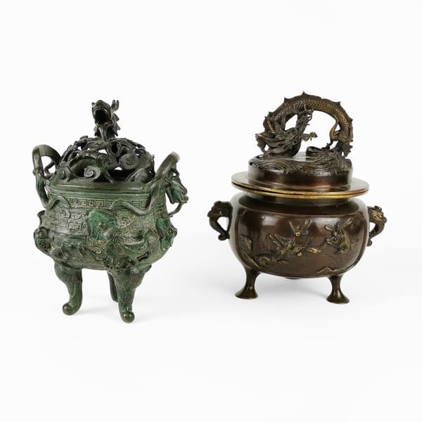 5340. Deux brûle-parfums à décor de dragons, Japon XIXe-XXe s
