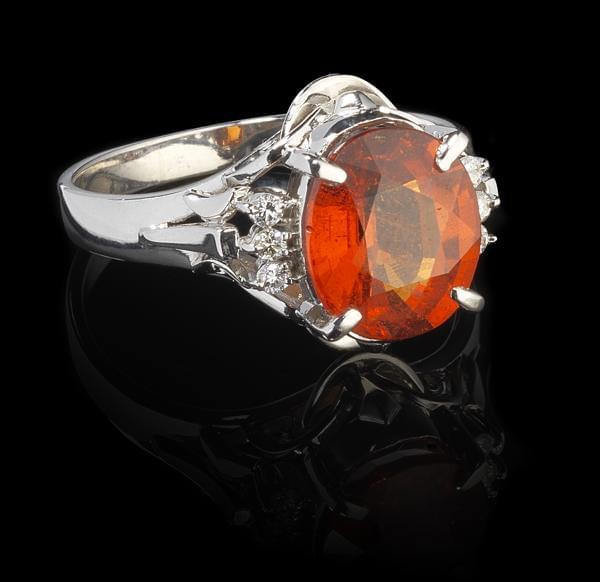 3418. *Bague sertie d'un saphir padparadscha rose-orangé non chauffé d...