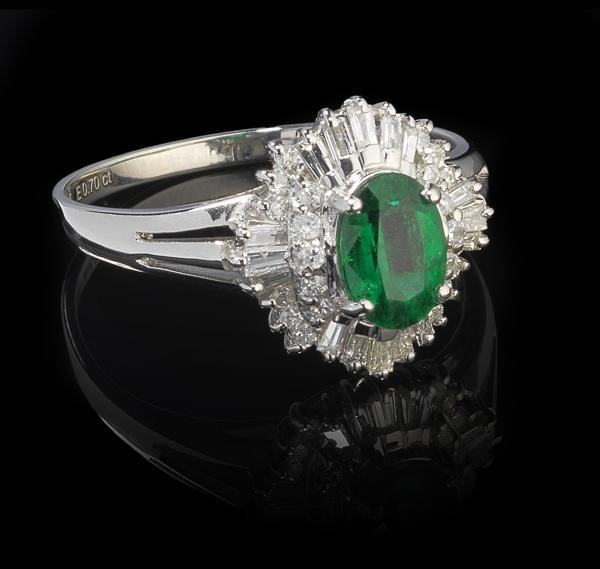 3434. Bague sertie d'une émeraude taille ovale (0,85 ct)