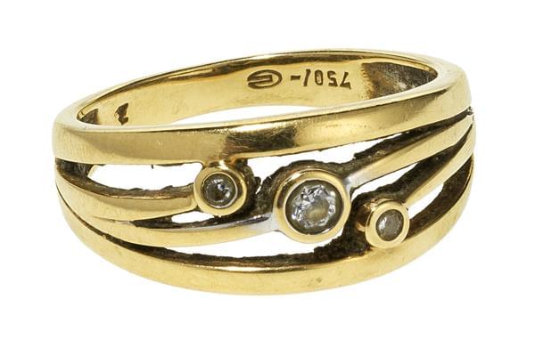 3413. Bague bandeau ajourée à trois fils sertis chacun d'une pierre d'...