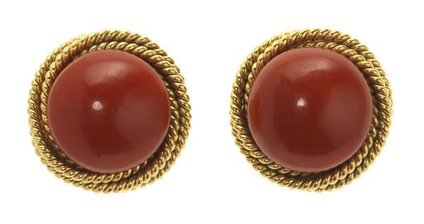 3457. Clips d'oreilles sertis de corail taille cabochon ronds