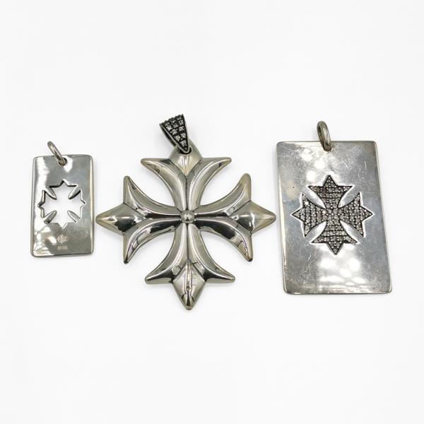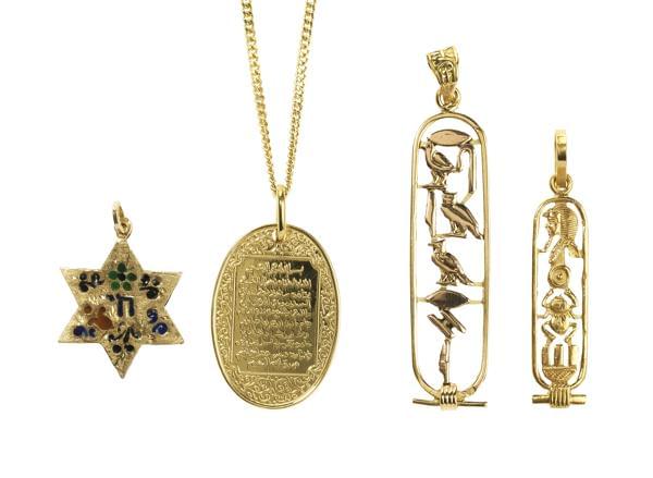 Une croix de David émaillée, une médaille coranique et deux pend...