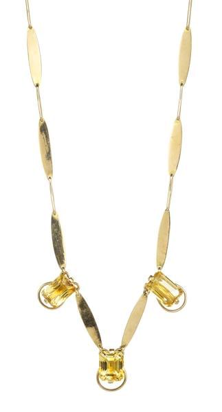 3470. Collier à maille fantaisie retenant trois citrines taille rectan...
