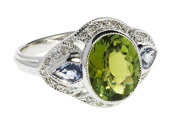 3417. *Bague sertie d'une tourmaline verte taille ovale (env. 1,7 ct)