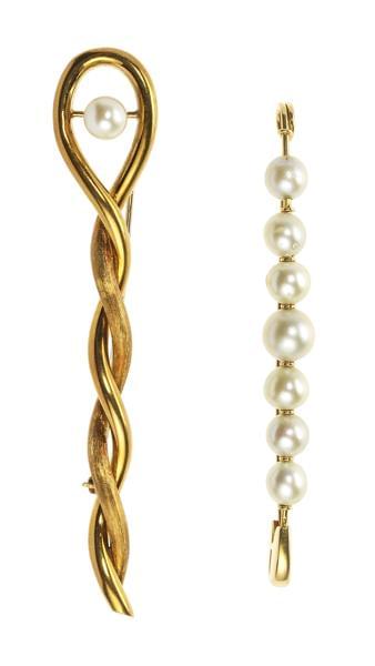 Une épingle à nourrice sertie de perles et une broche à motif to...